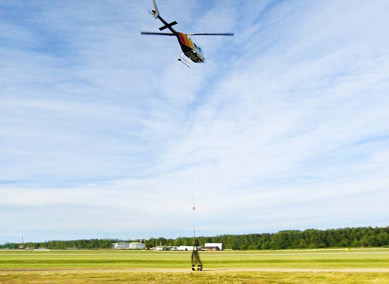 Schwer erreichbare Baustellen oder schwieriges Terrain sind für Hubschrauber prädestinierte Einsatzgebiete, um Maschinen oder Bauteile an Ort und Stelle zu transportieren.